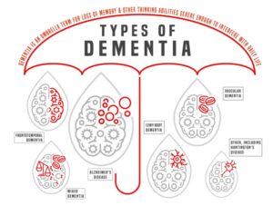 There are different types of dementia, the common ones depicted here. In this article, we’ll be touching on frontotemporal dementia. Click on the image for a larger and clearer version.