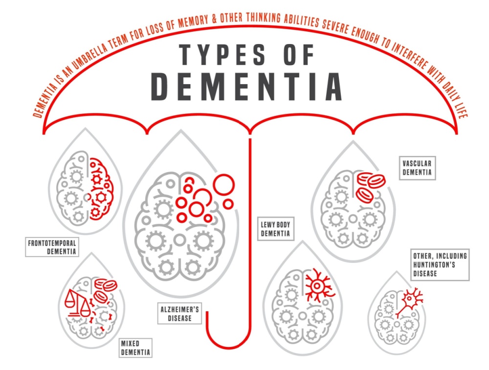 There are different types of dementia, the common ones depicted here. In this article, we’ll be touching on frontotemporal dementia. Click on the image for a larger and clearer version.